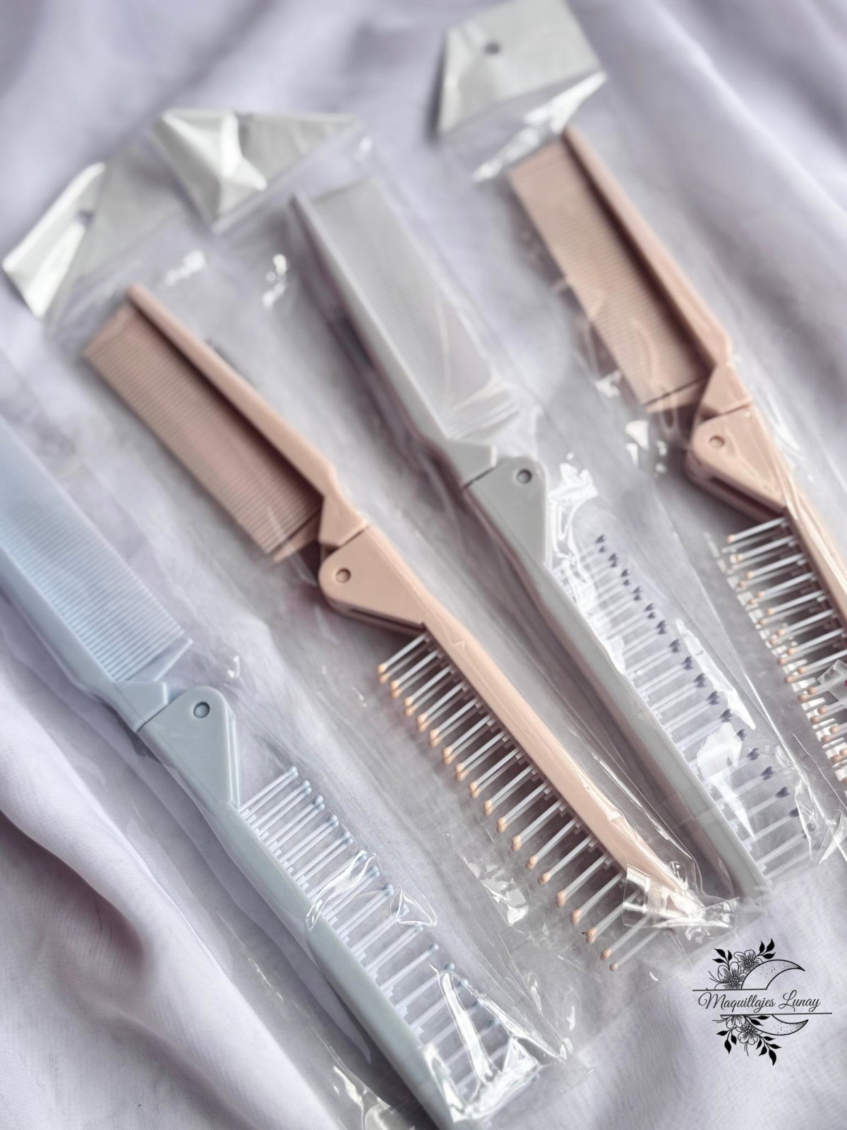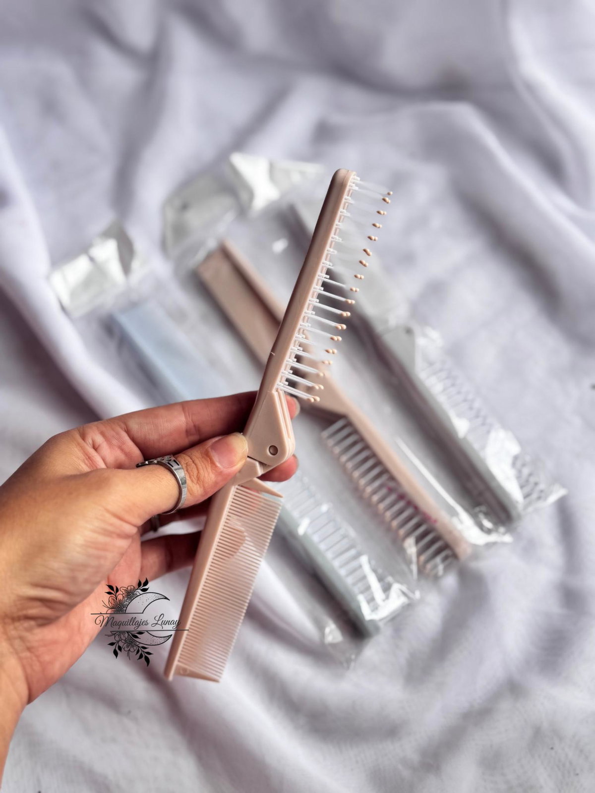 Práctico y funcional, este peine doble plegable cuenta con cepillo de un lado y peine del otro, ideal para todo tipo de retoques. Se dobla a la mitad, quedando en un formato compacto, perfecto para llevar en la cartera, mochila o neceser.