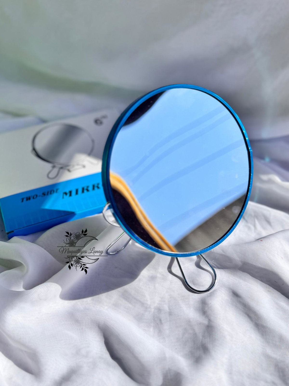 El espejo doble de 6 pulgadas ofrece dos caras: una con reflejo normal y otra con aumento, ideal para detalles de maquillaje, cuidado facial o depilación. Su base firme permite apoyarlo sobre cualquier superficie, dejando tus manos libres para trabajar con comodidad.