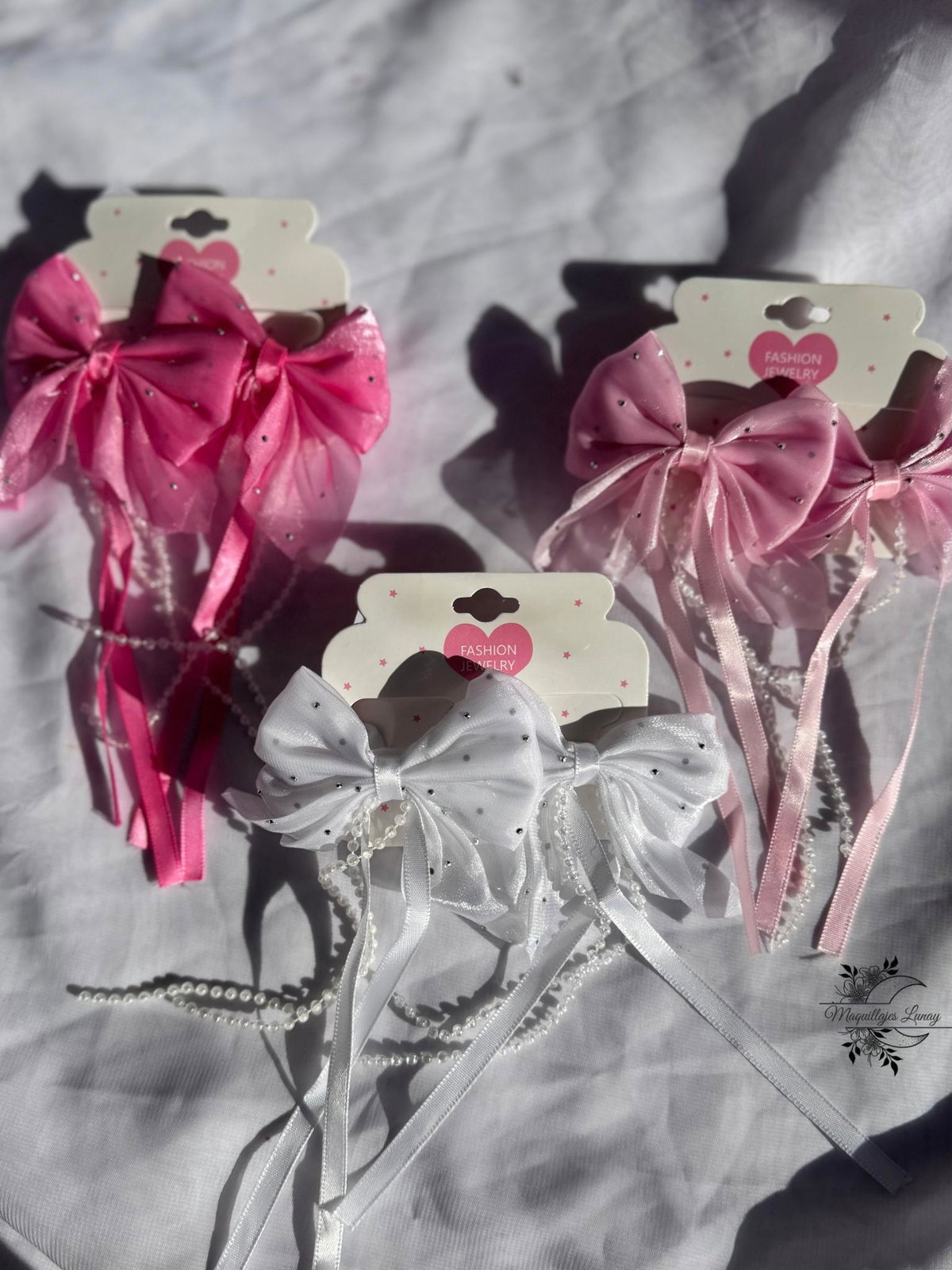 Disponibles en tres colores hermosos: rosa, fucsia y blanco. Ideales para peinados de todos los días, cumpleaños, fiestas o cualquier momento en el que tu pequeña quiera sentirse una princesa 💕👧