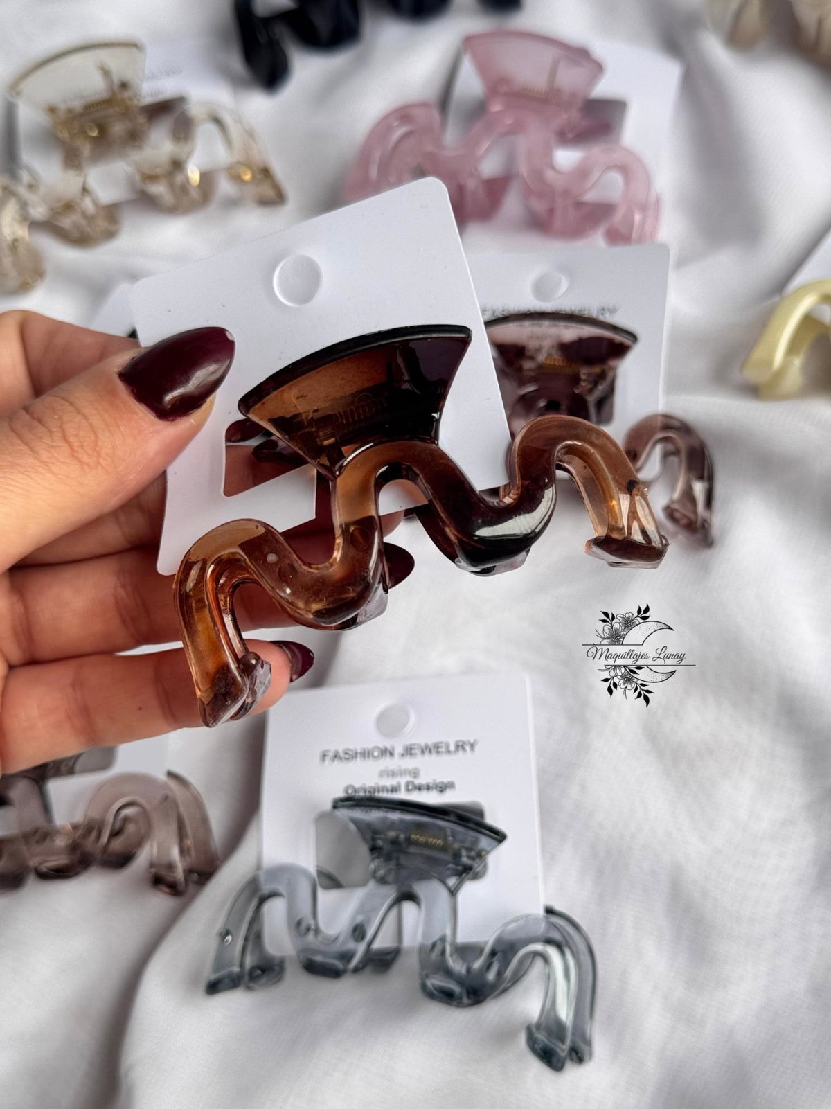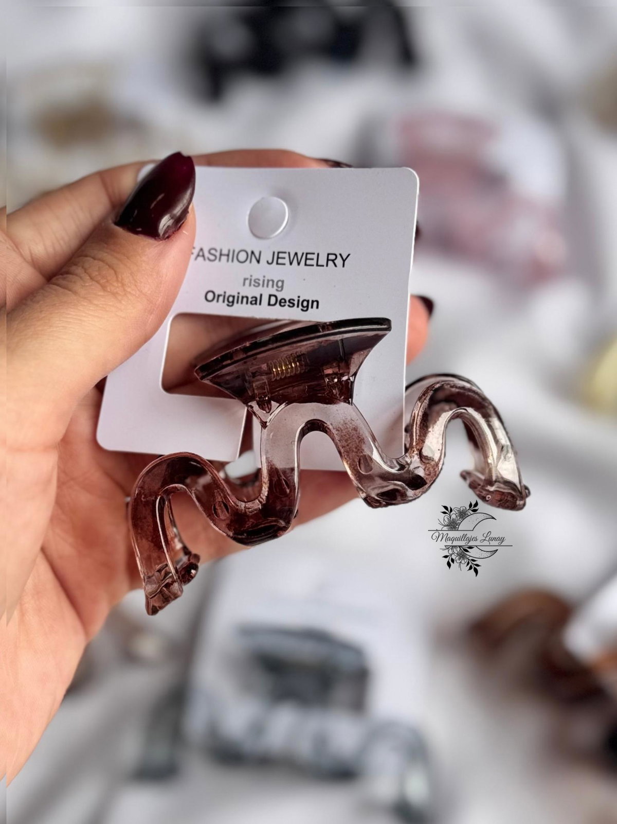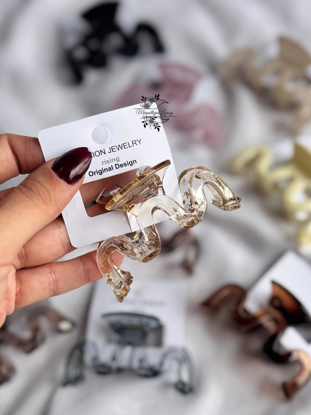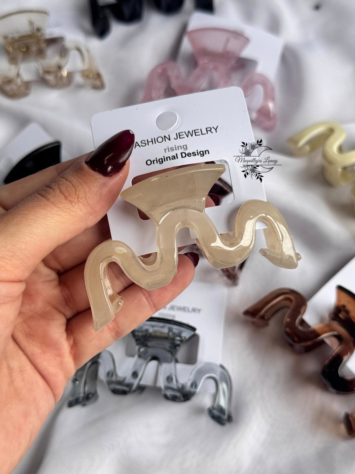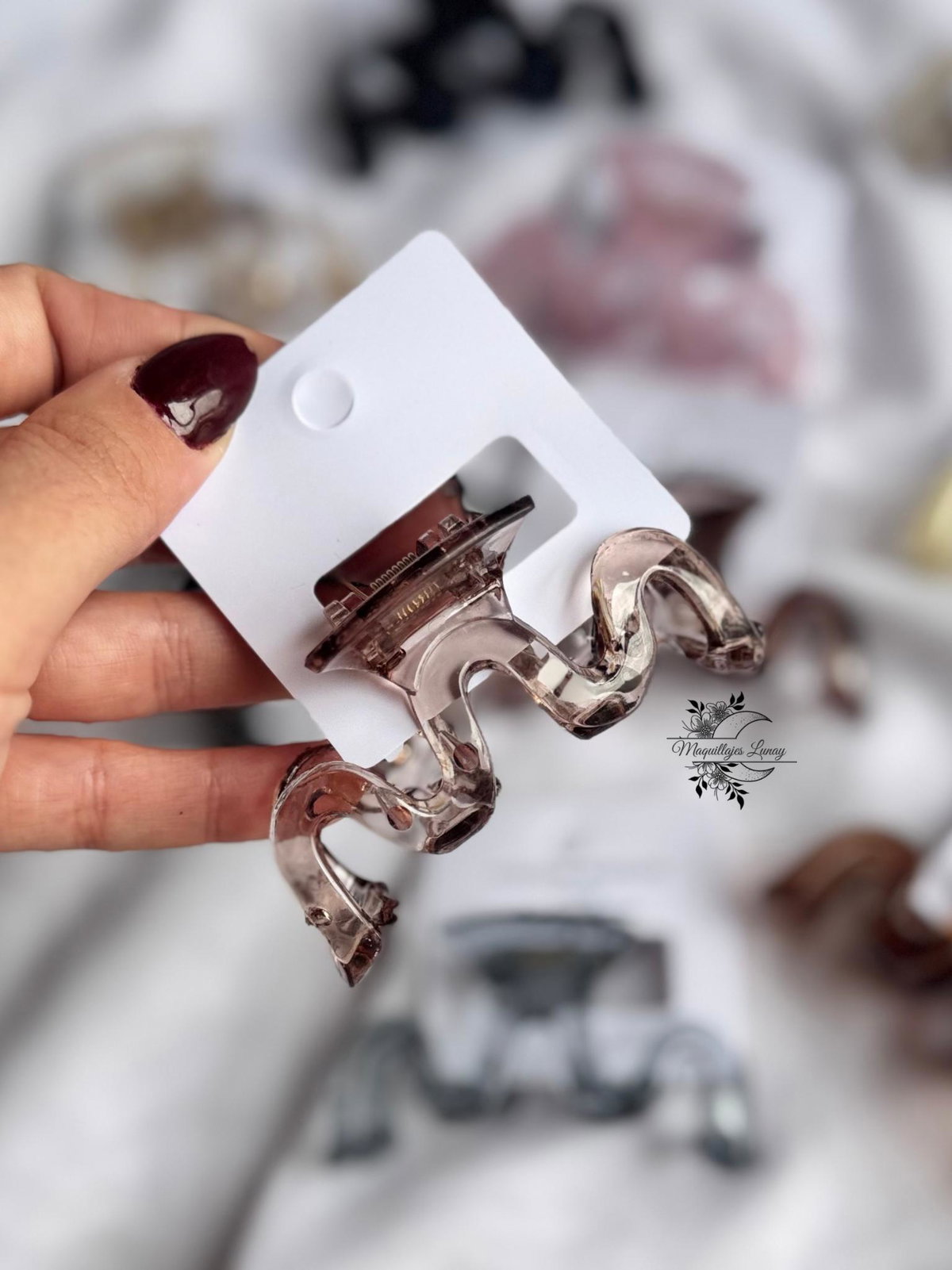 Nuestra hebilla Wave combina estilo y funcionalidad en un solo accesorio. Con su diseño ondulado, moderno y minimalista, es perfecta para sujetar el cabello con firmeza sin perder el estilo.