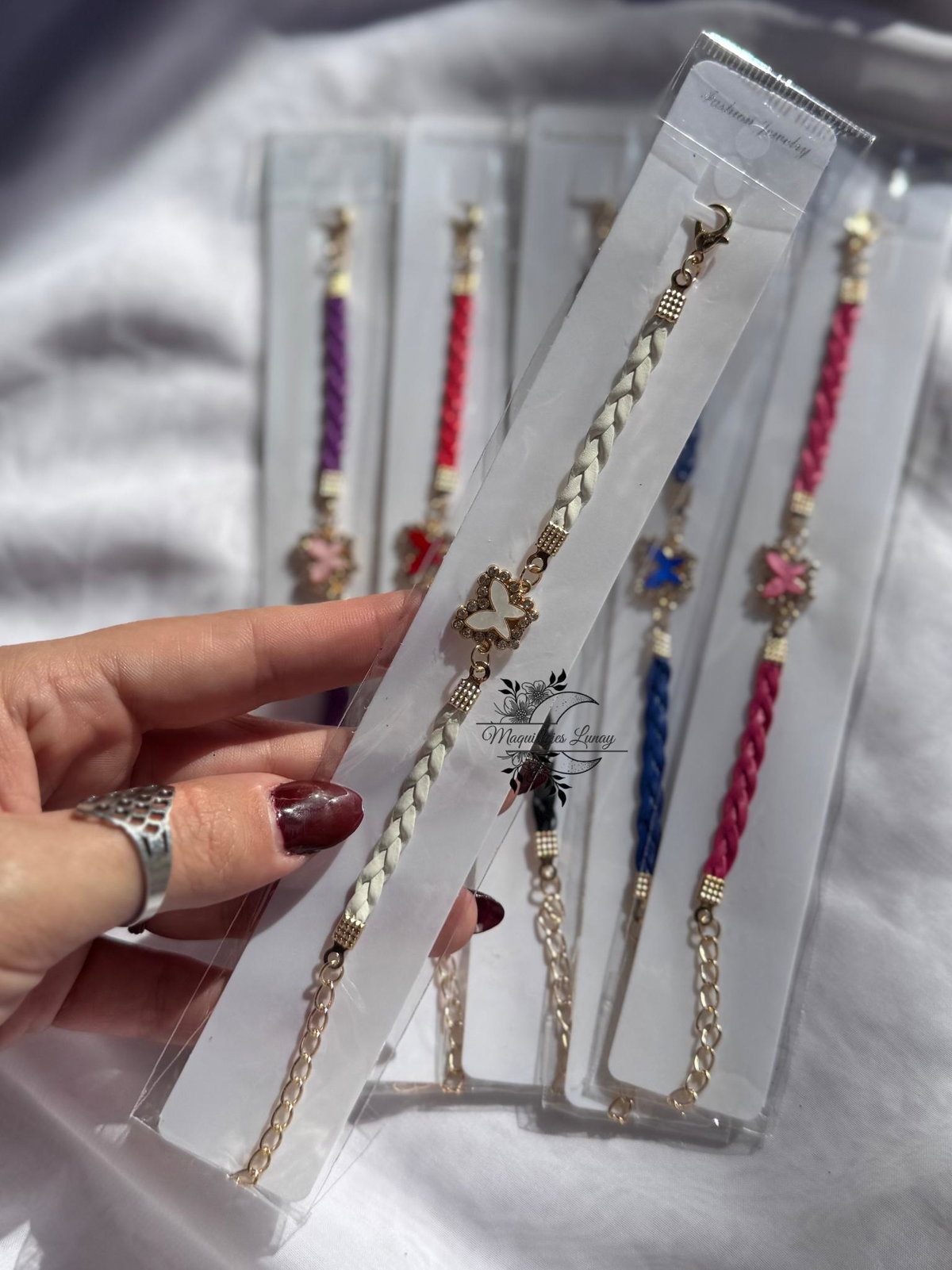 La pulsera "ButterFly" es ese toque de ternura y estilo que no te puede faltar. Hecha con cinta trenzada en distintos colores vibrantes, y decorada con un dije de mariposa enmarcada en detalles dorados, es ideal para usar todos los días o regalar a alguien especial.