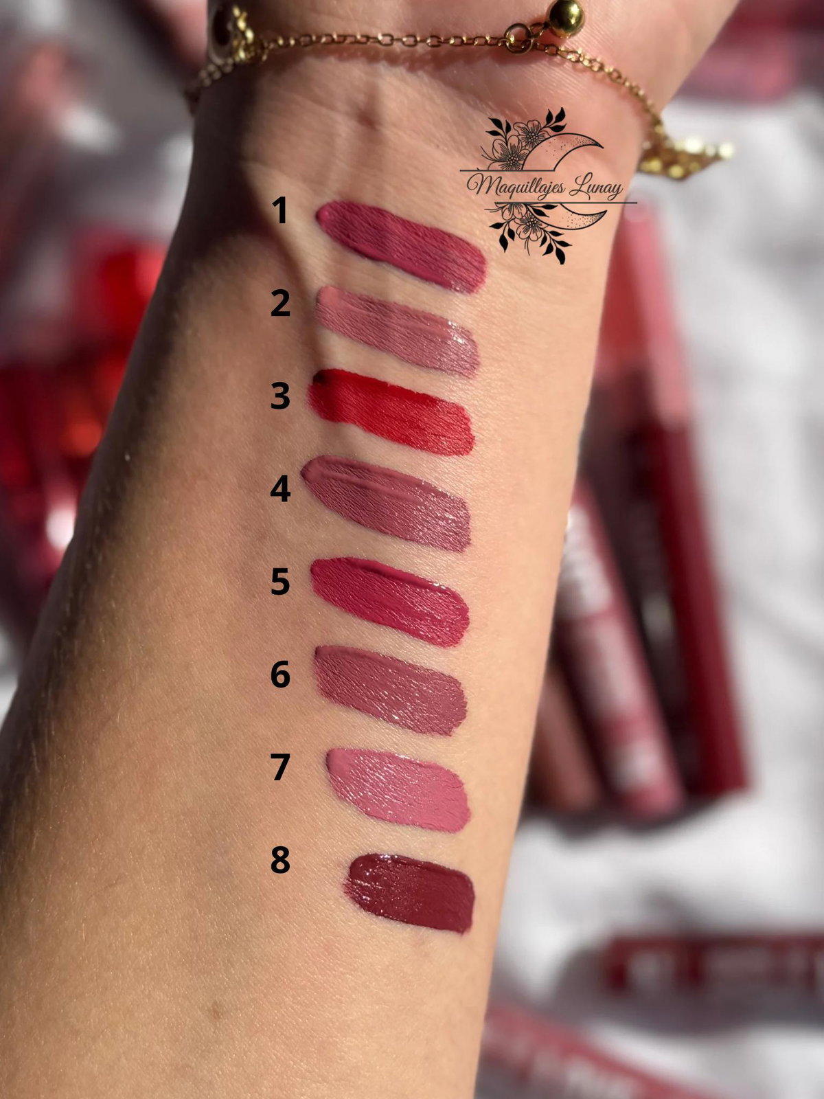 Este labial matte de larga duración viene en 8 tonos irresistibles, que van desde rosados suaves hasta rojos intensos, pensados para realzar tu belleza natural y acompañarte en cada momento. Su fórmula cremosa se desliza fácil y se fija sin transferir, para que te sientas segura y cómoda en cualquier situación.
