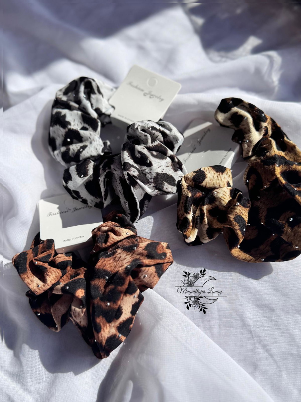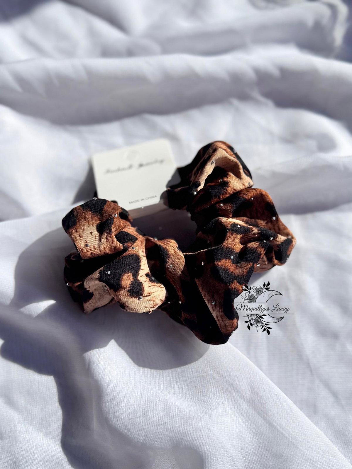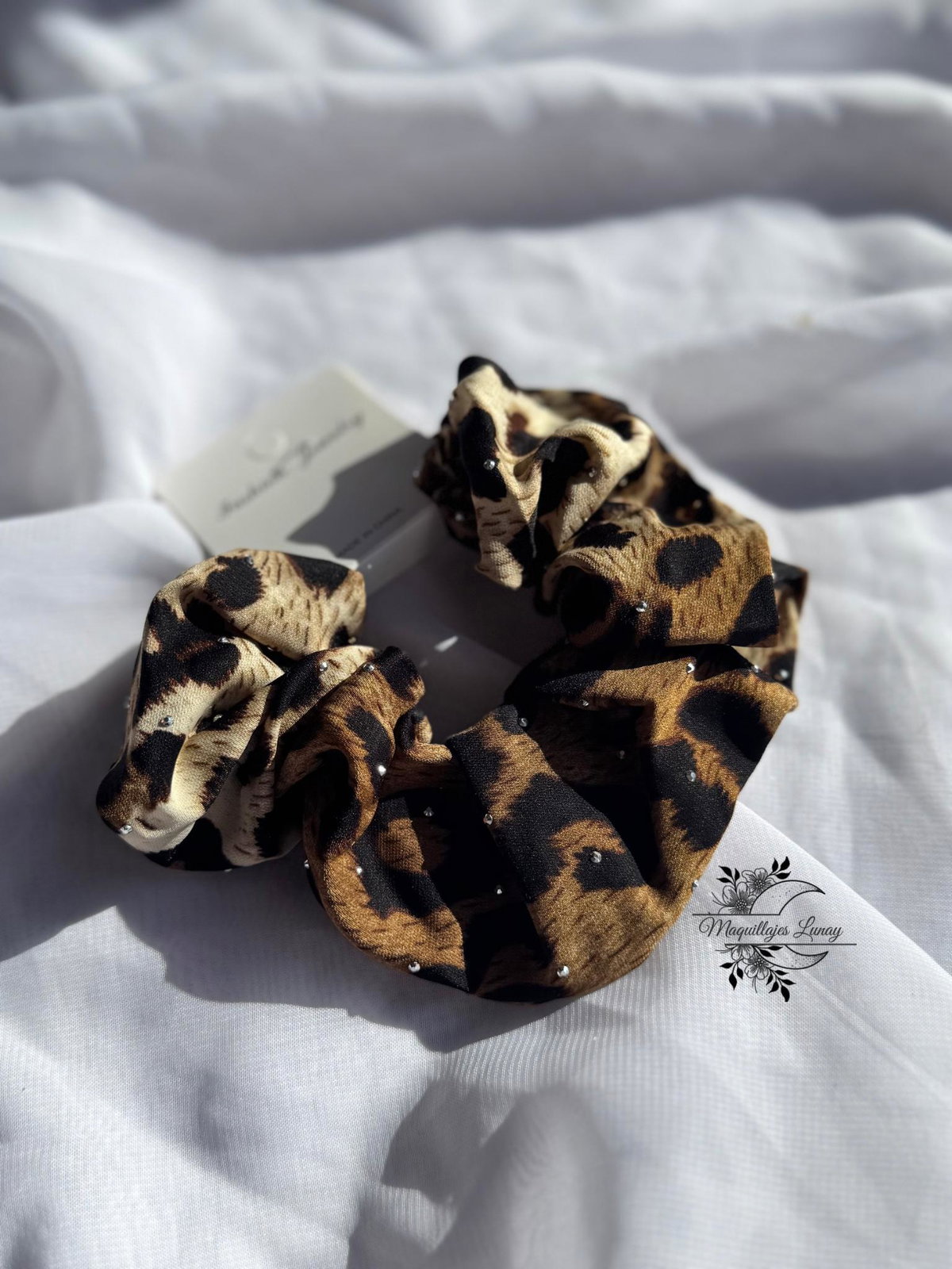 ✨ Colita de Pelo Scrunchie Animal Print con Strass 🐆✨
