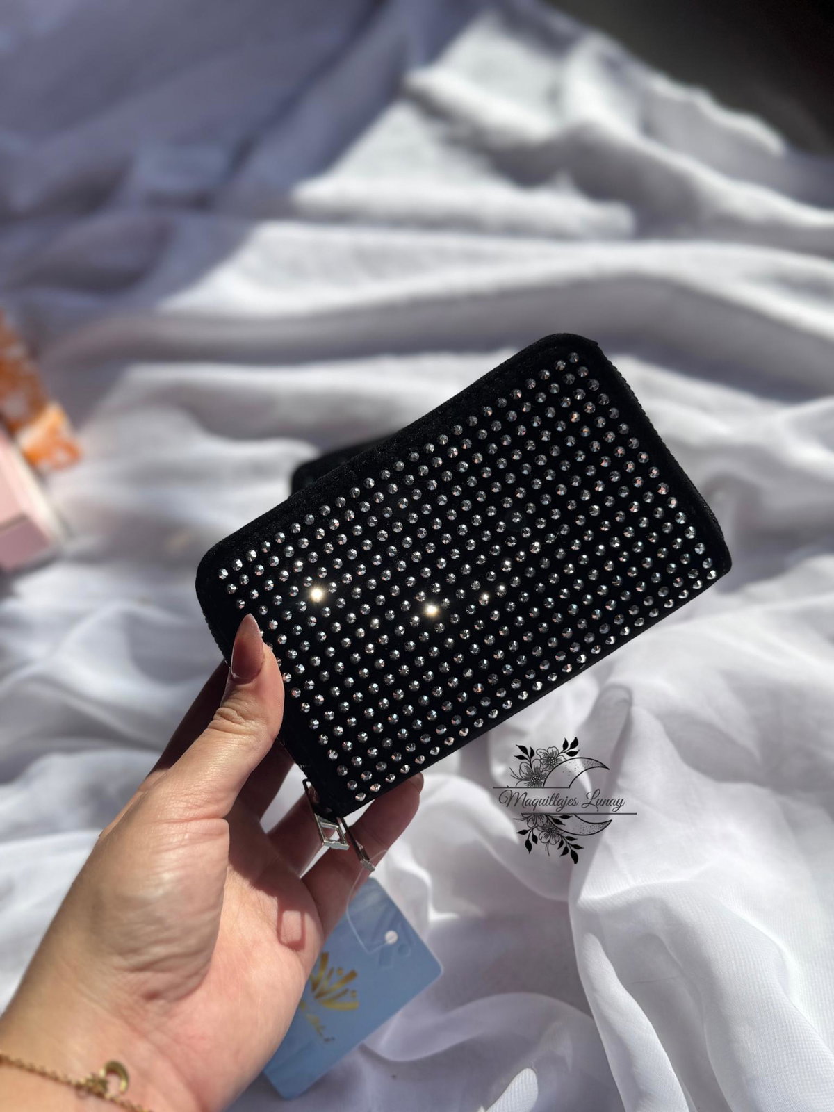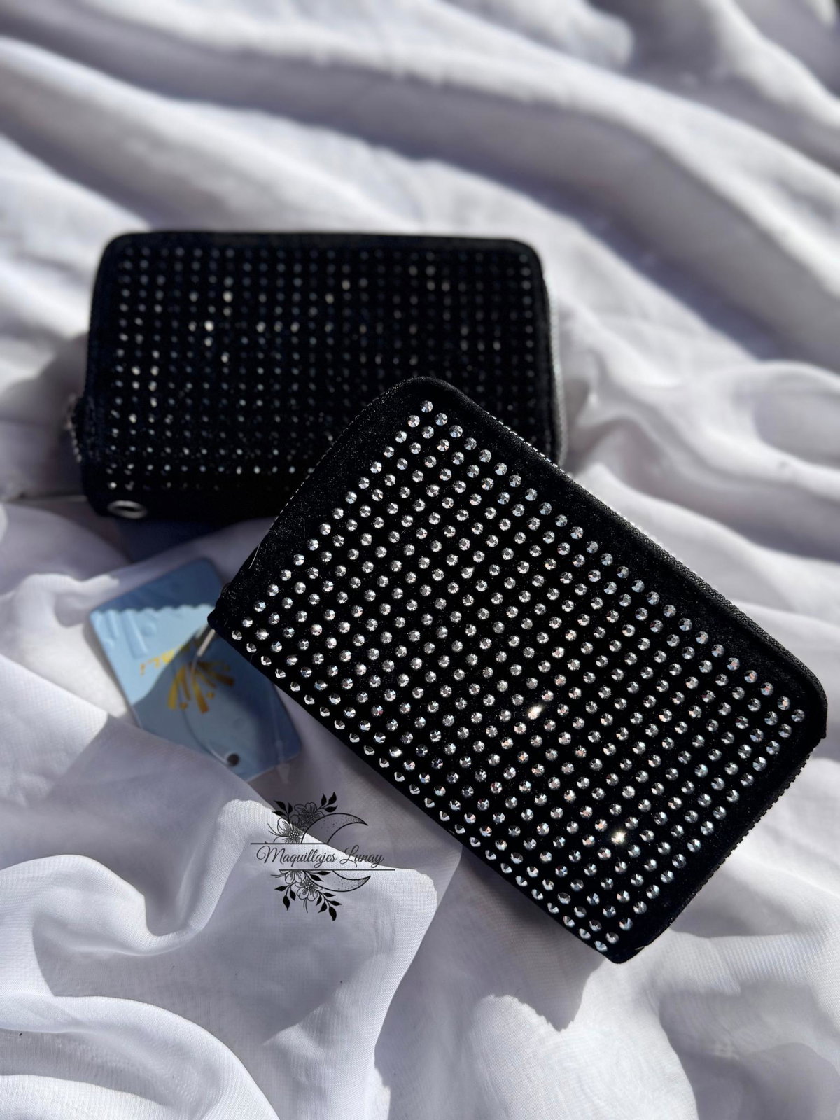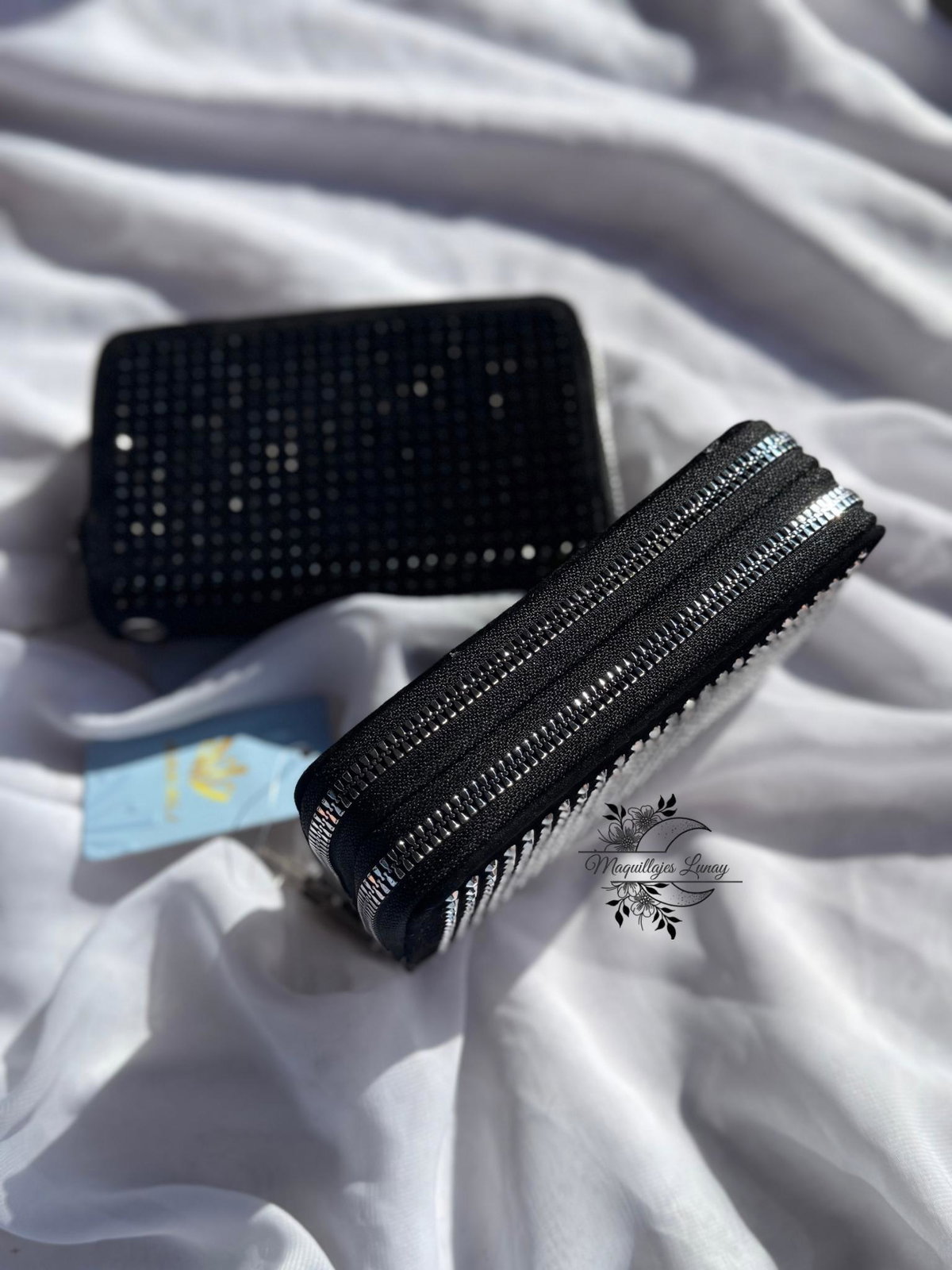✨ Billetera Doble Piso de Gamuza Negra con Strass 💼✨
