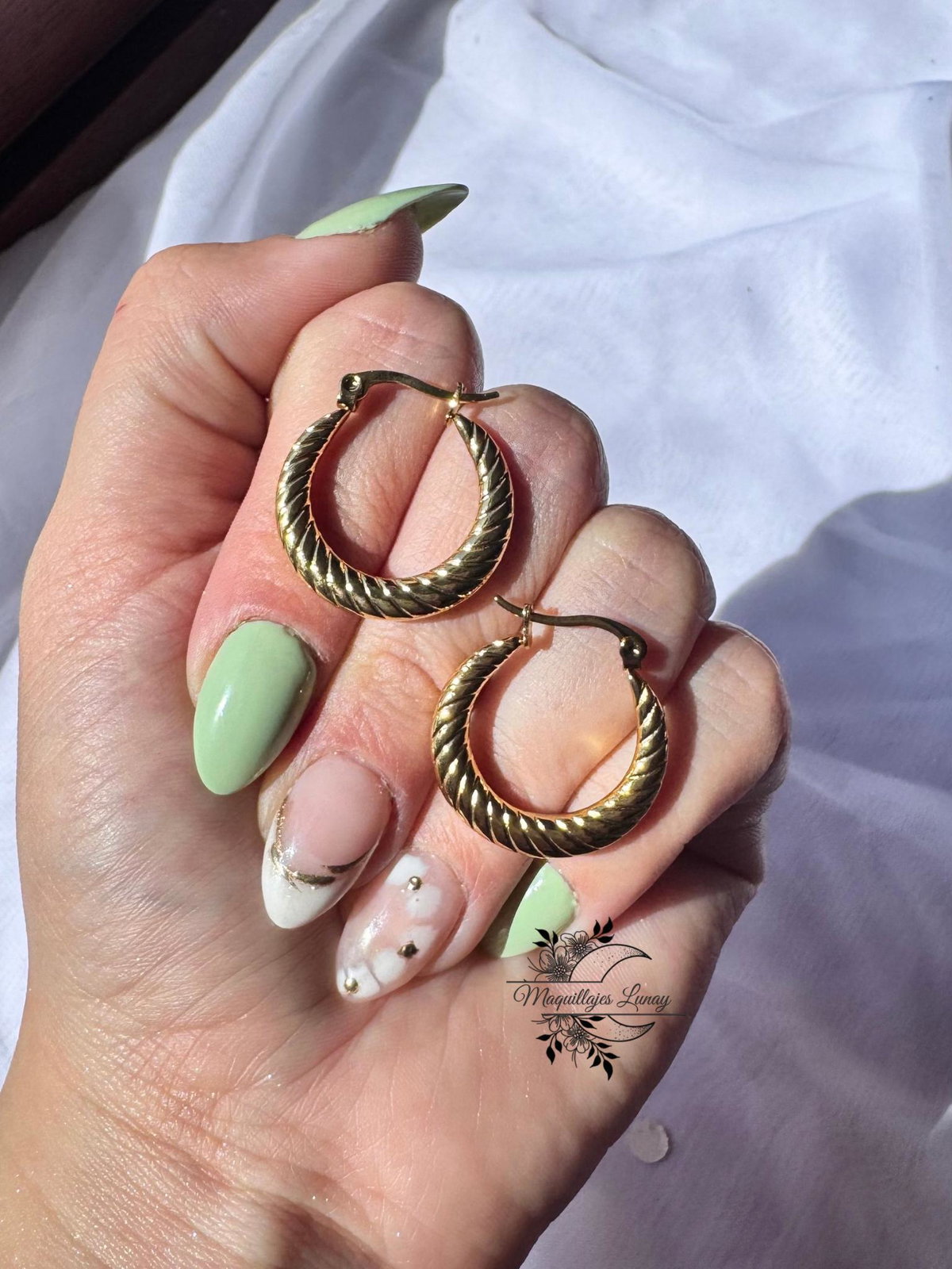 Fabricadas en acero dorado, resistentes y con brillo duradero para que puedas usarlas todos los días sin preocuparte por perder el color.
