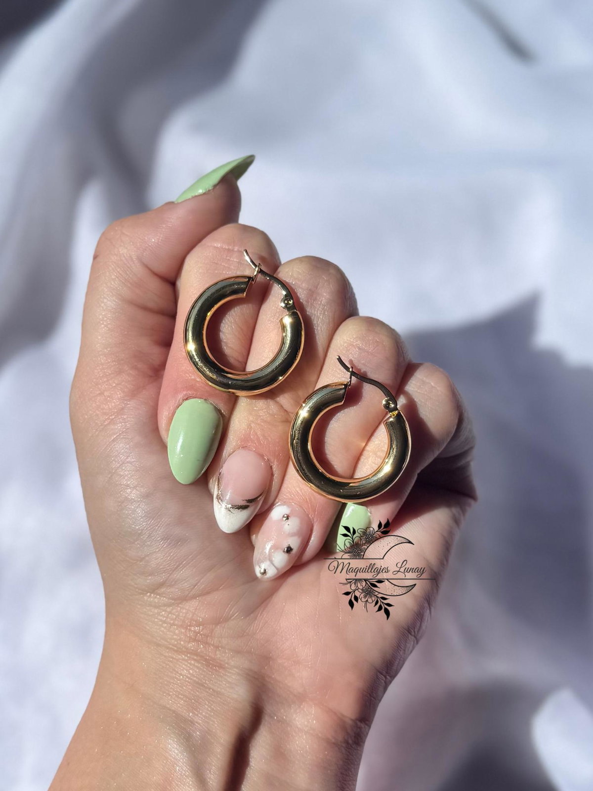 Un clásico con presencia 💫 Estas argollas doradas son anchas, gruesas y con un peso firme, ideales para quienes buscan un accesorio que se note y realce cualquier look.