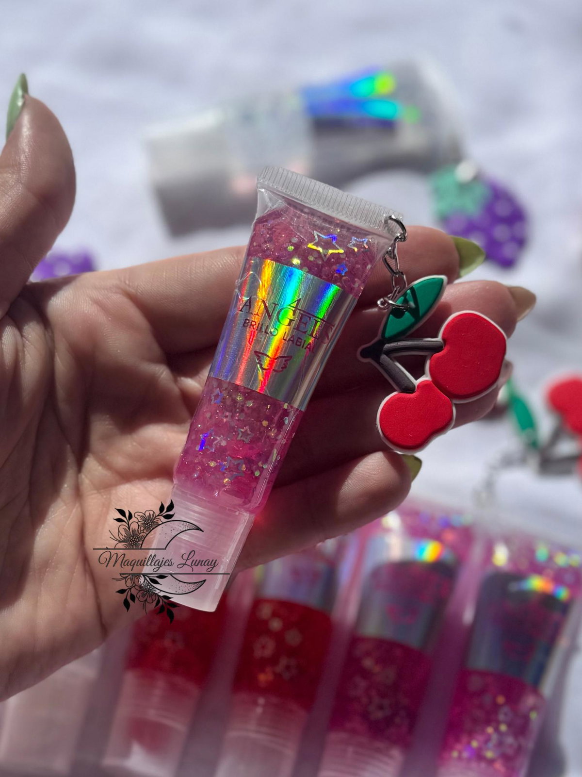 Un gloss que combina brillo, diversión y estilo 💖 ¡Tus labios y tu look nunca pasarán desapercibidos!