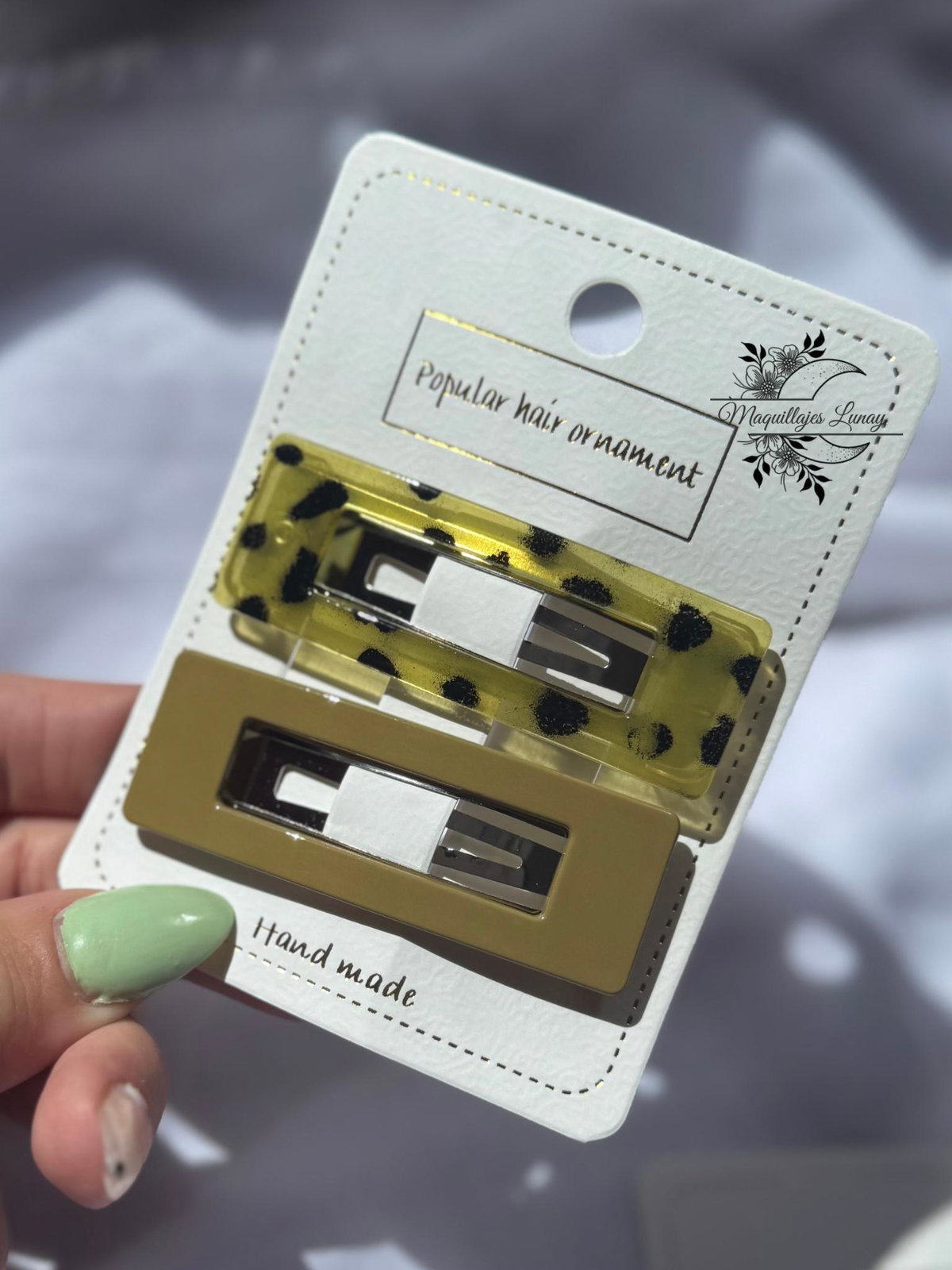 Cada set incluye 2 hebillas sapito: una en color liso y otra en animal print, para que armes looks divertidos, modernos y con mucha personalidad.