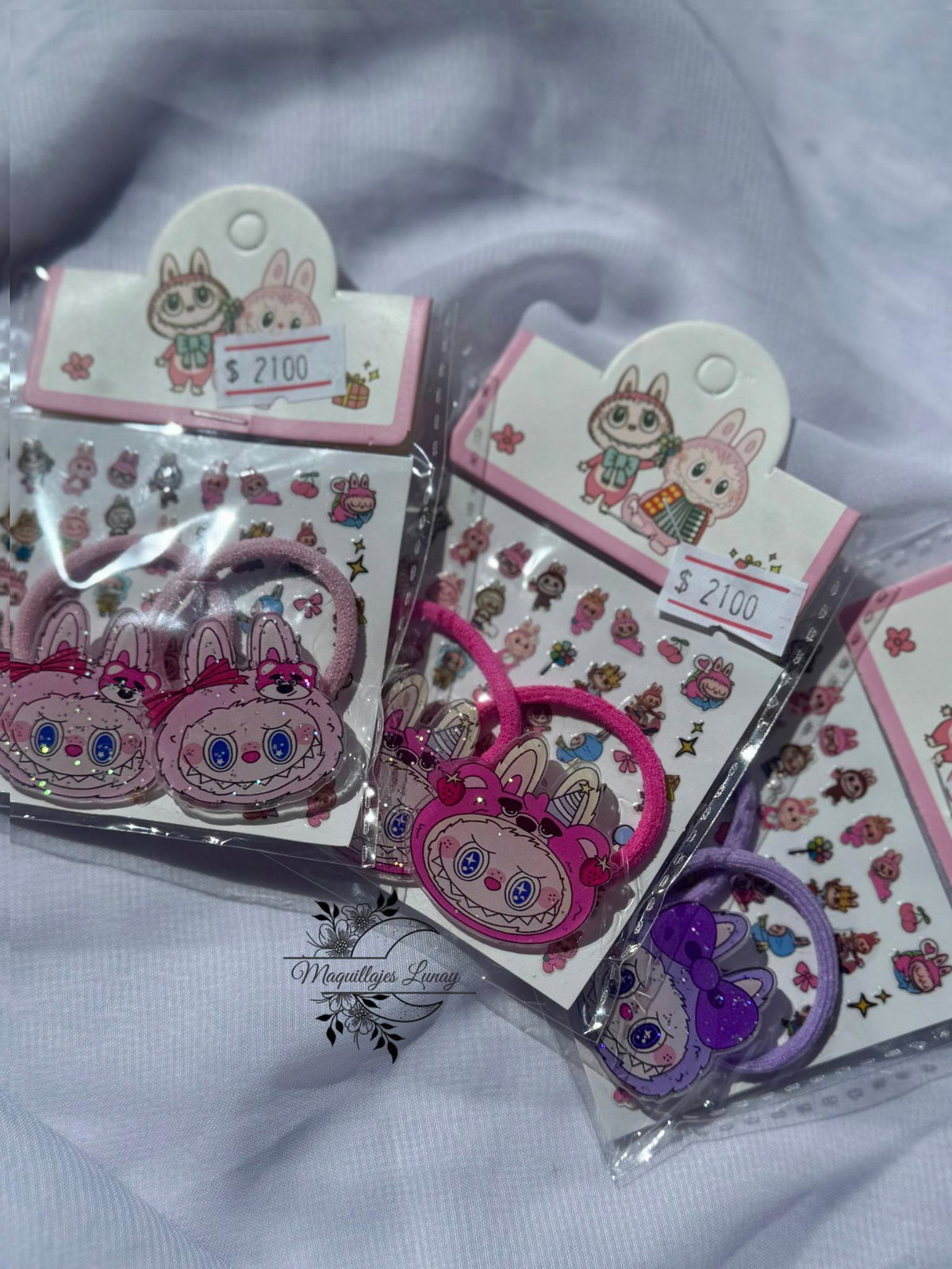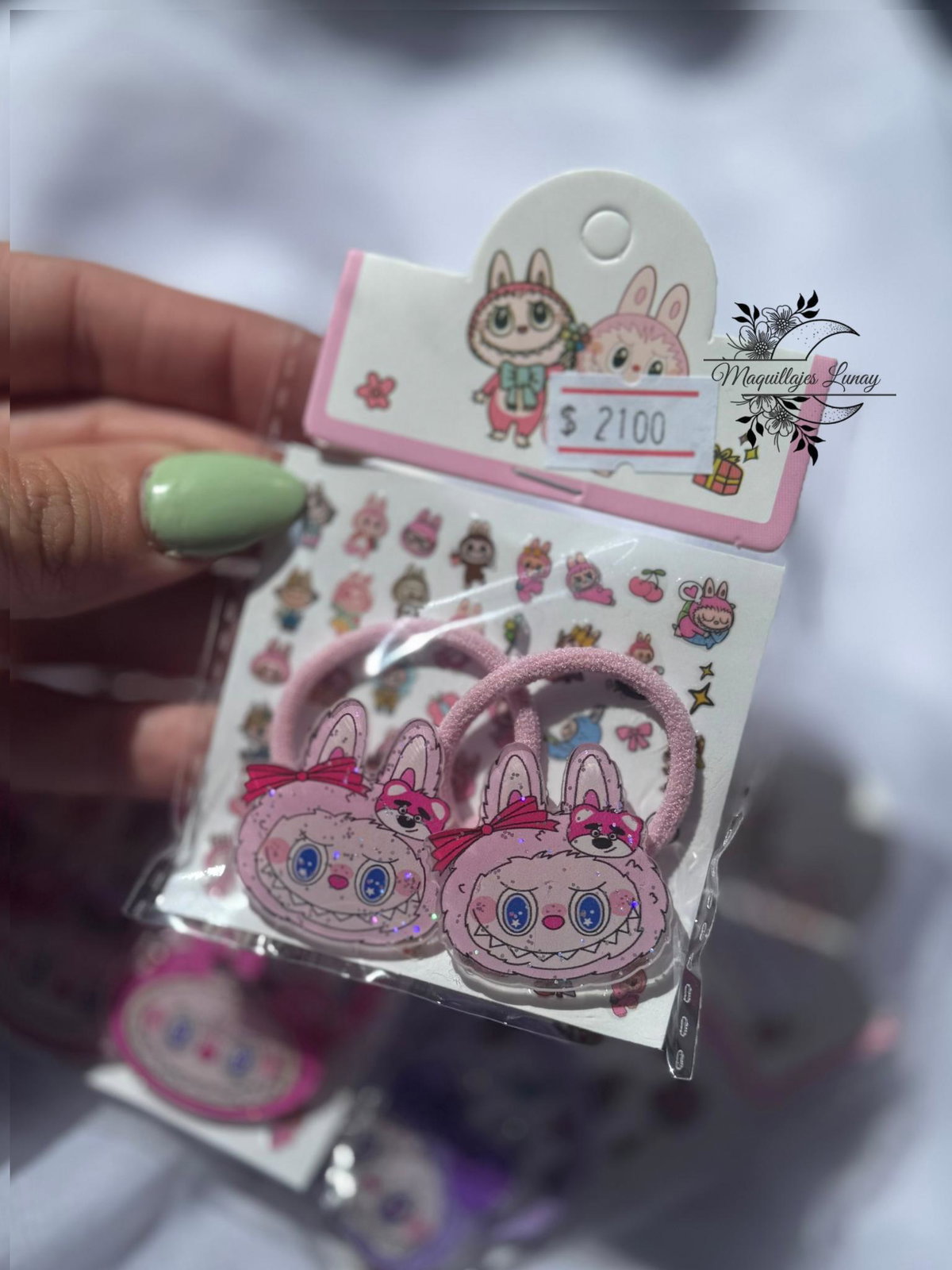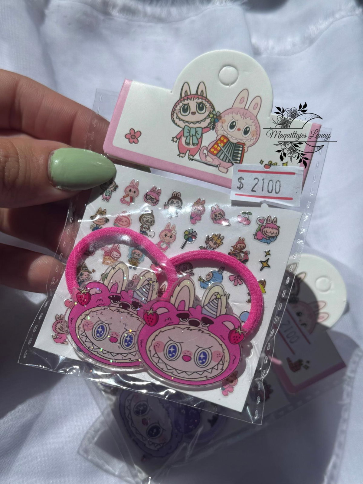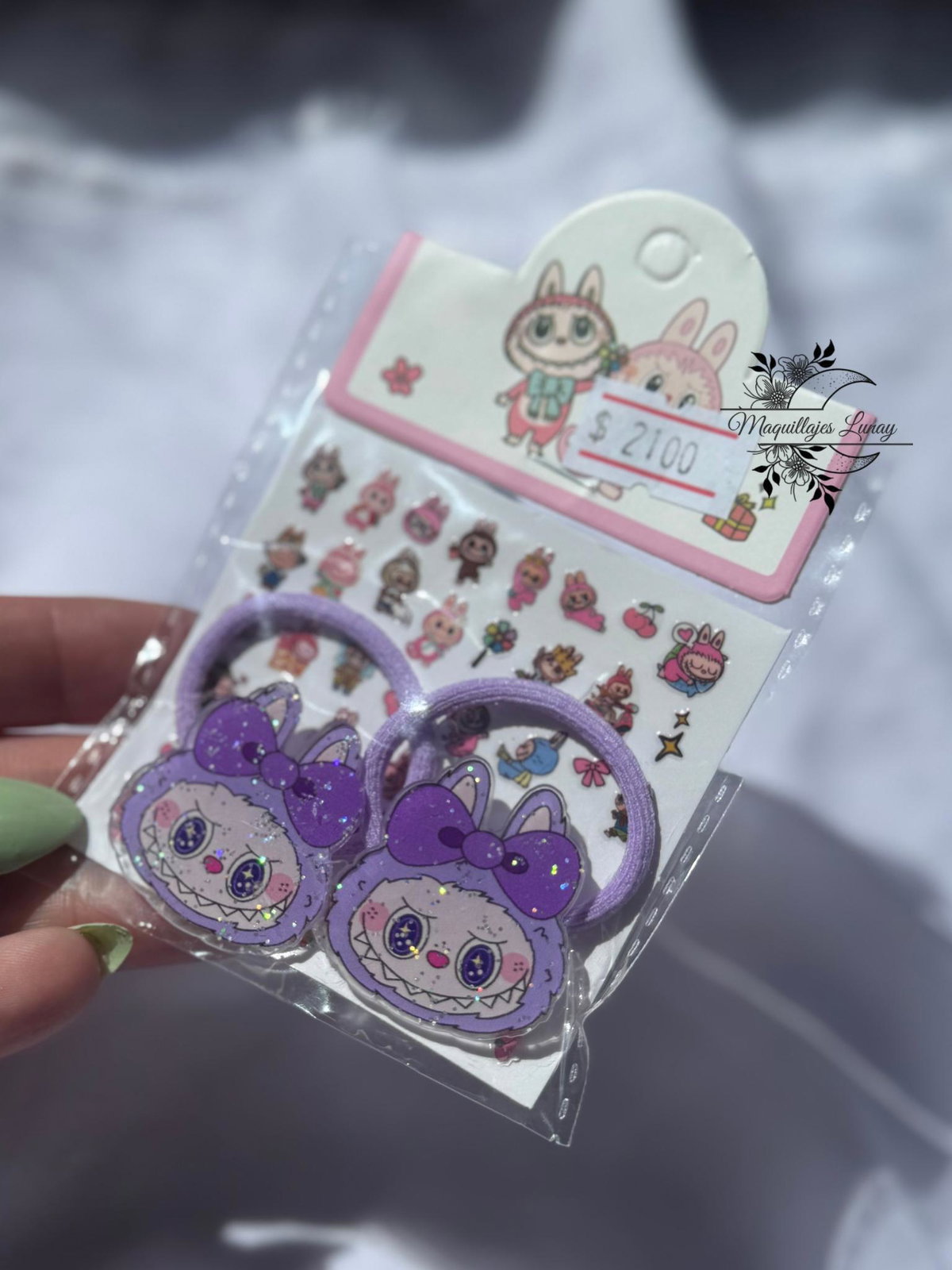 Dale un toque tierno y original a tu peinado con estas colitas de acrílico con glitter, inspiradas en Labubu y decoradas con una hebilla del osito Lotso.
