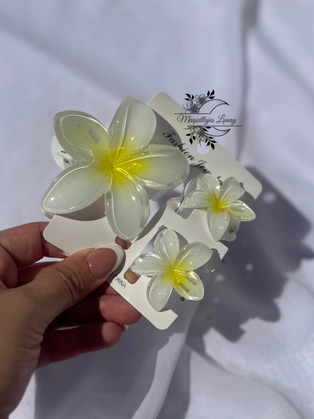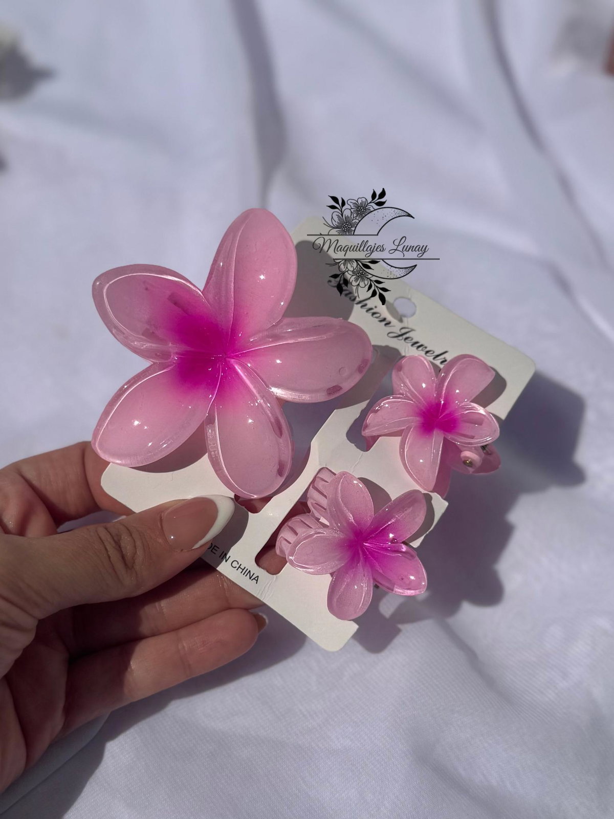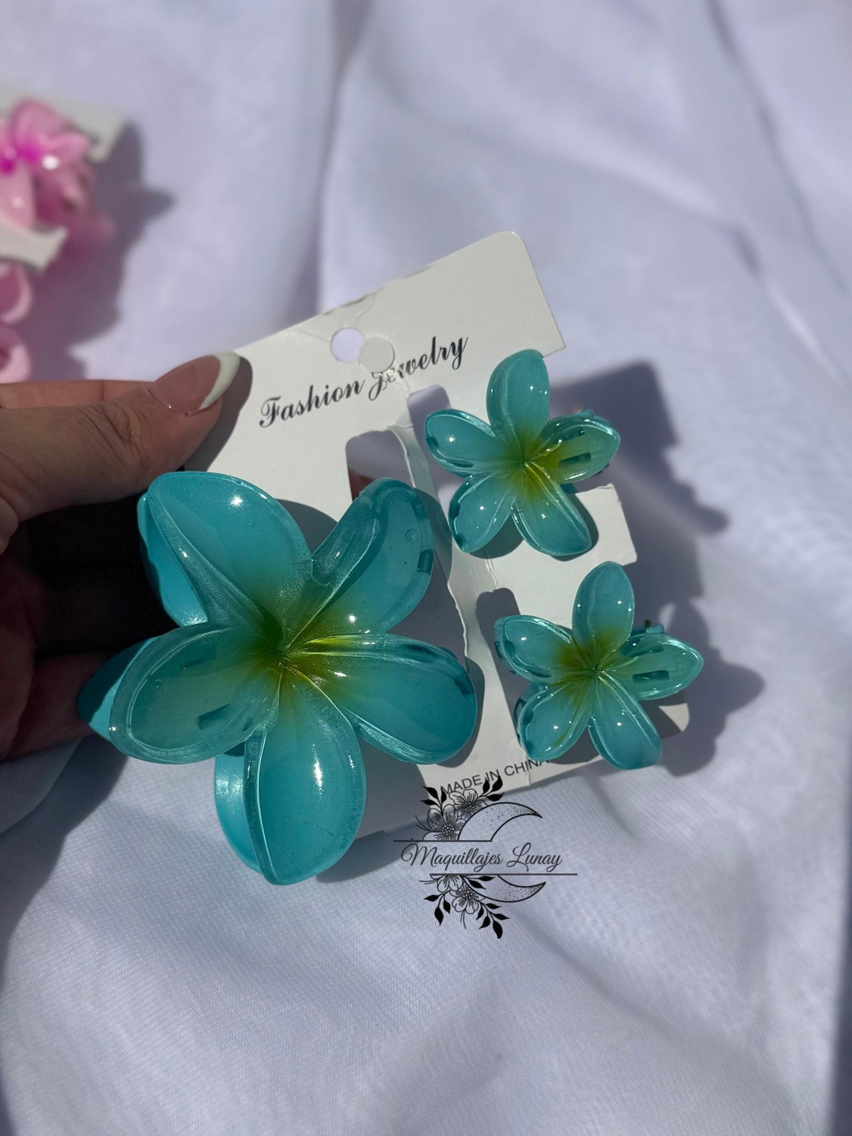 Lleva un pedacito de verano y alegría a tu look con este set de broches estilo hawaiano.