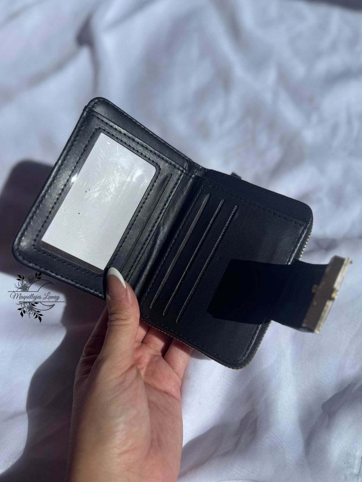Compacta pero funcional, cuenta con múltiples compartimentos para tarjetas, documentos, billetes y un bolsillo con cierre para monedas. Su tamaño la hace perfecta para llevar en cualquier cartera o bolso, sin perder comodidad ni estilo.
