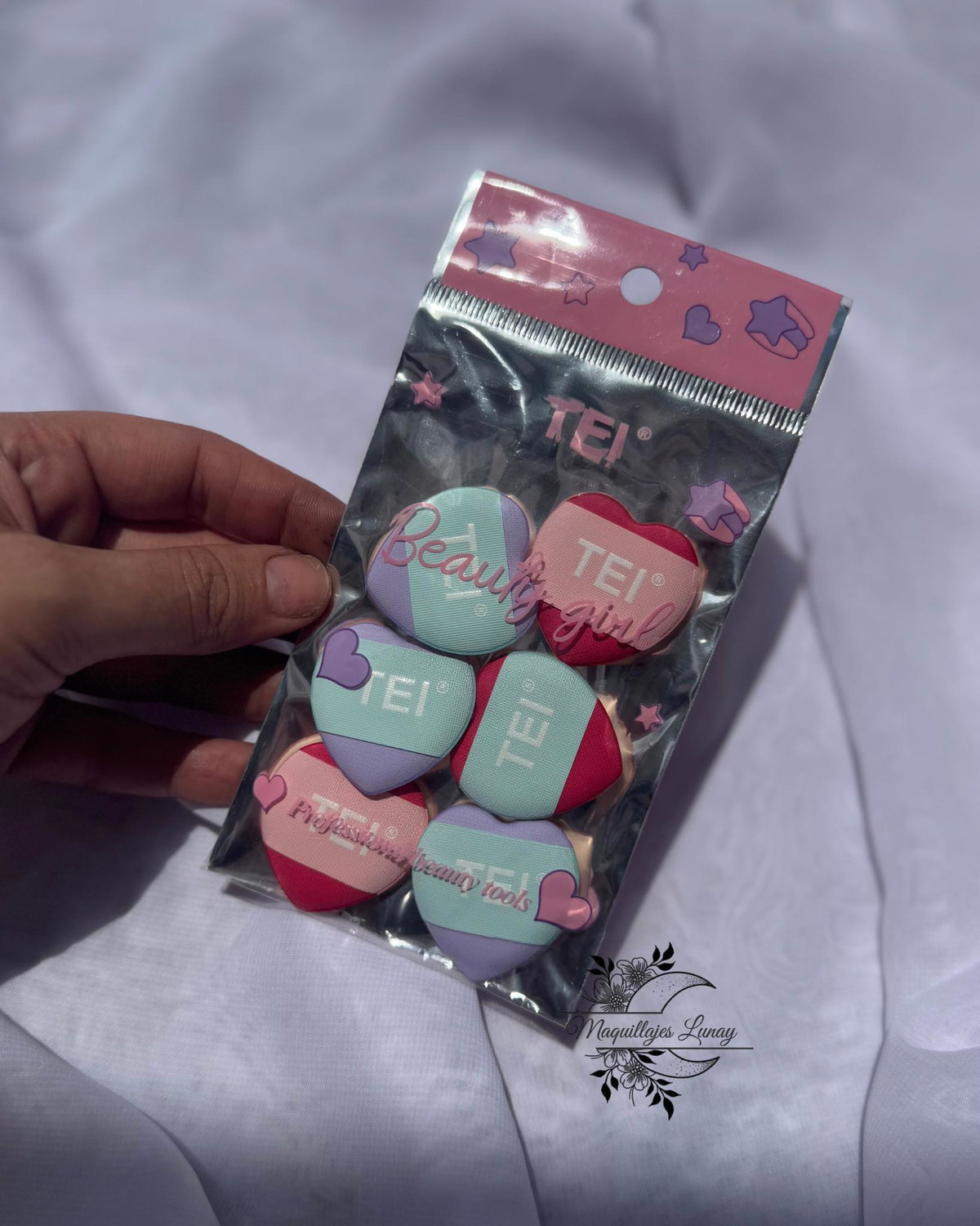 Dale un toque tierno y práctico a tu rutina con las esponjitas para corrector TEI, diseñadas en una adorable forma de corazón que permite trabajar con precisión las zonas pequeñas del rostro.