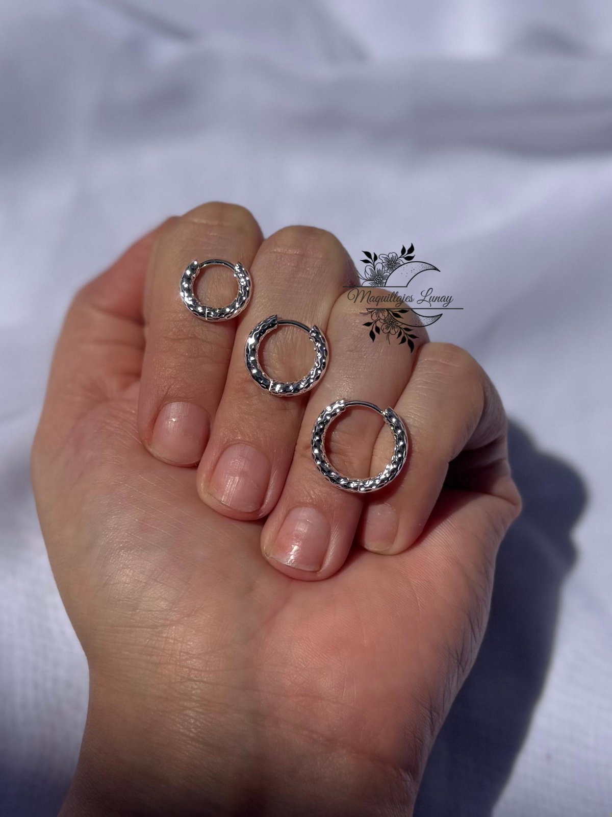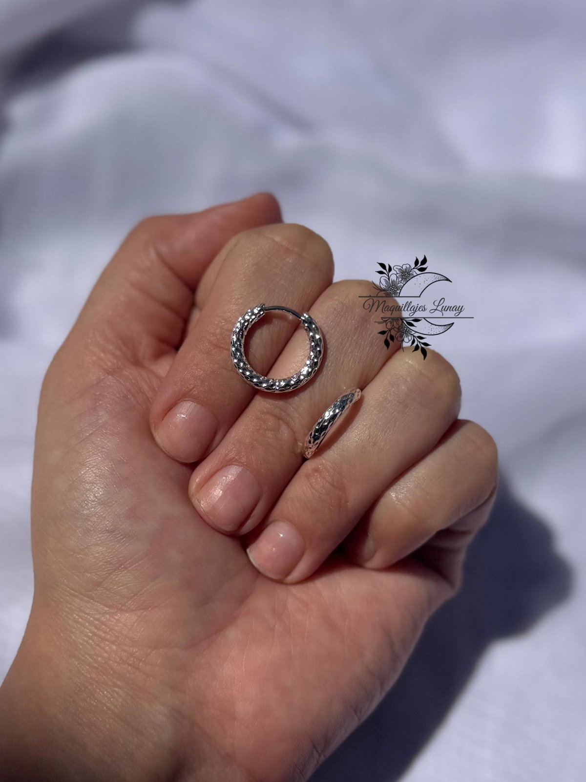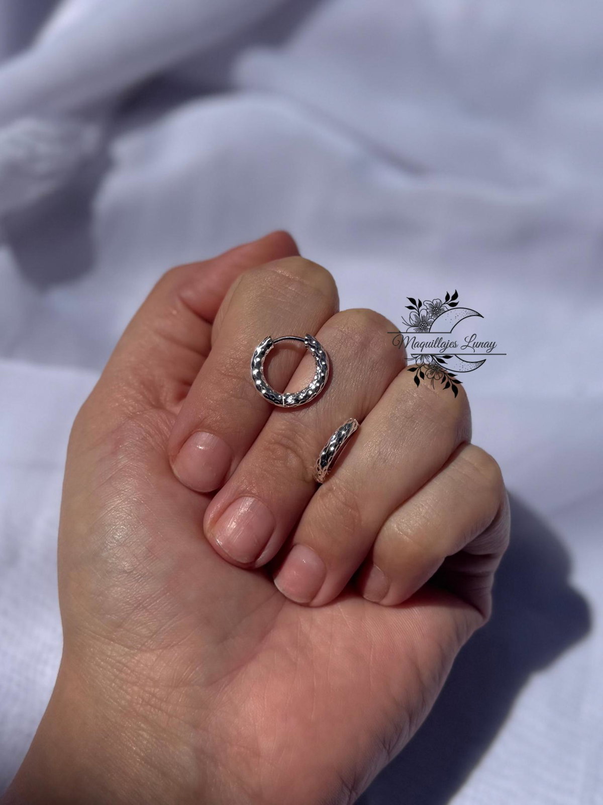 Argollitas delicadas con una textura sutil que aporta brillo y un acabado elegante.