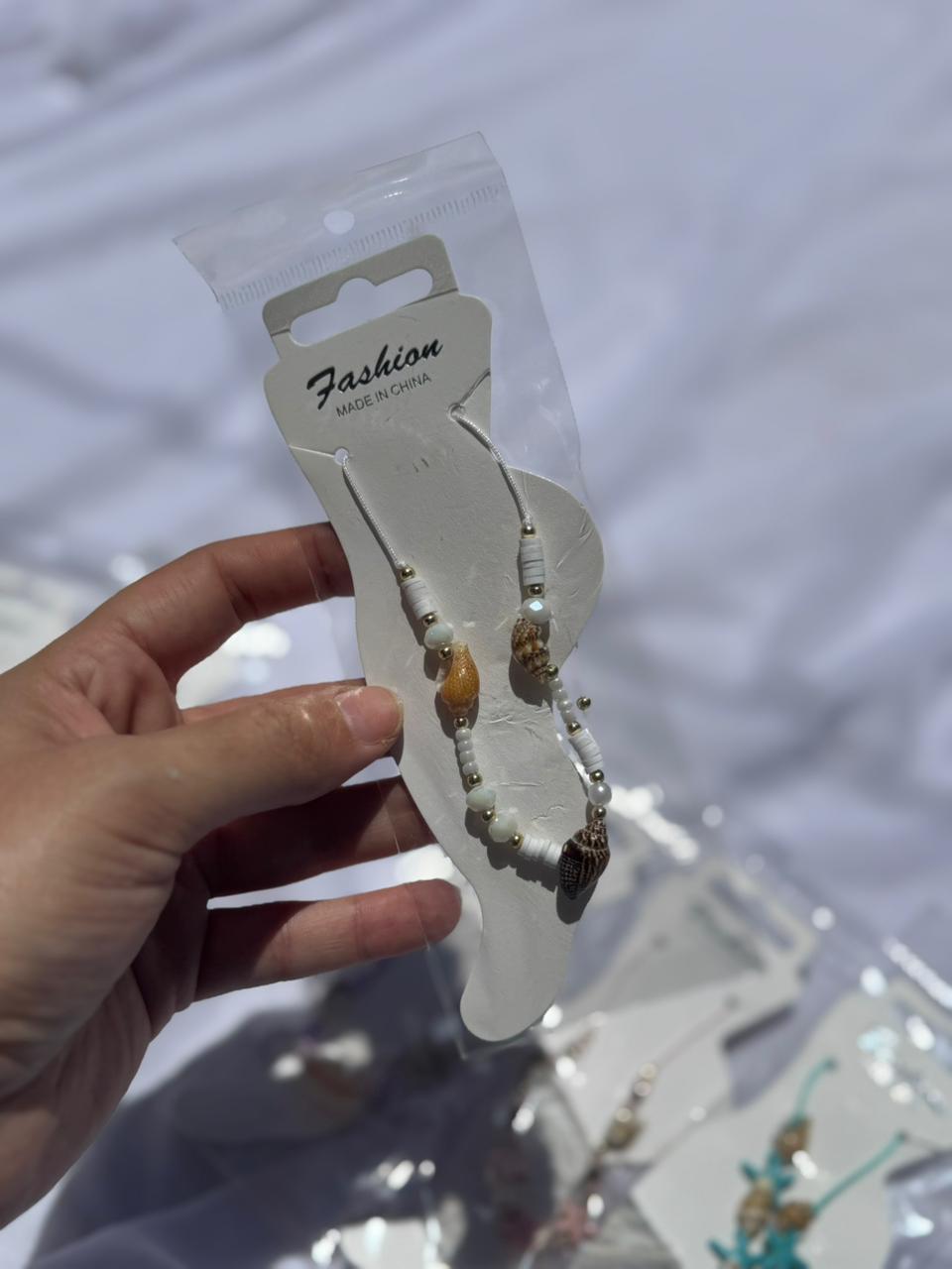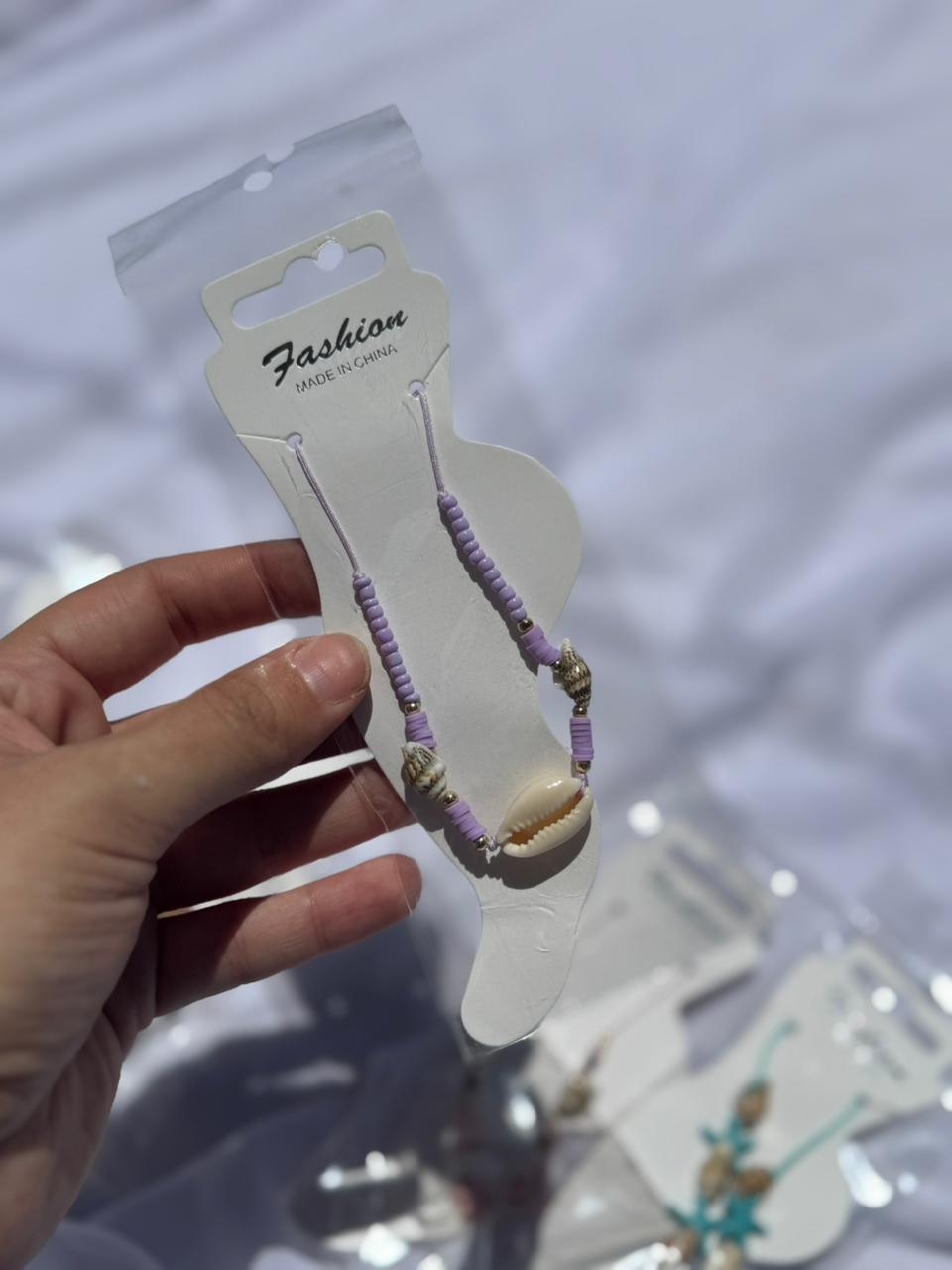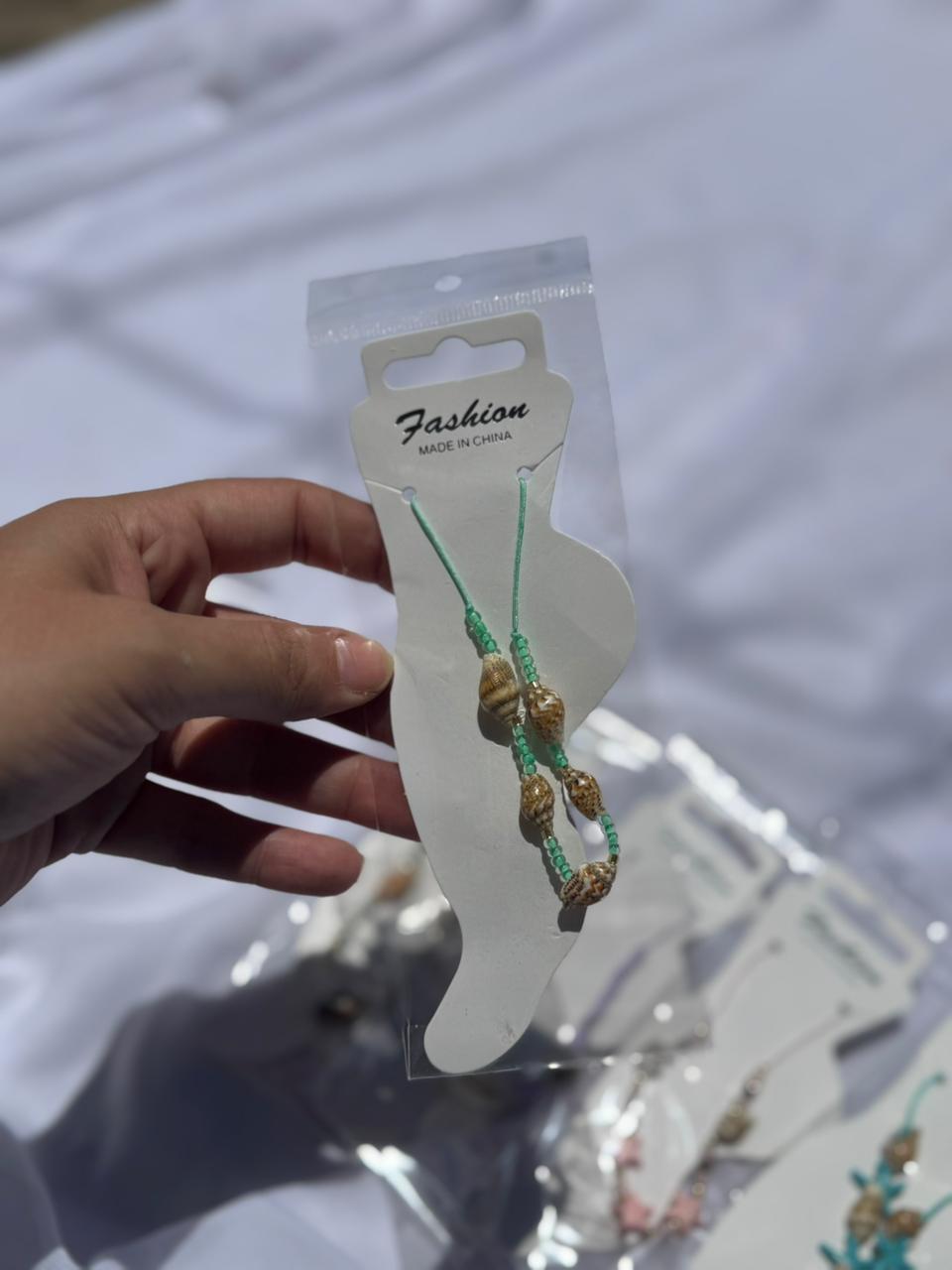 Tobilleras de hilo con detalles de colores y caracoles, ideales para sumar un toque boho y veraniego a tus looks. Livianas, cómodas y perfectas para usar todos los días, en la playa o en salidas informales.