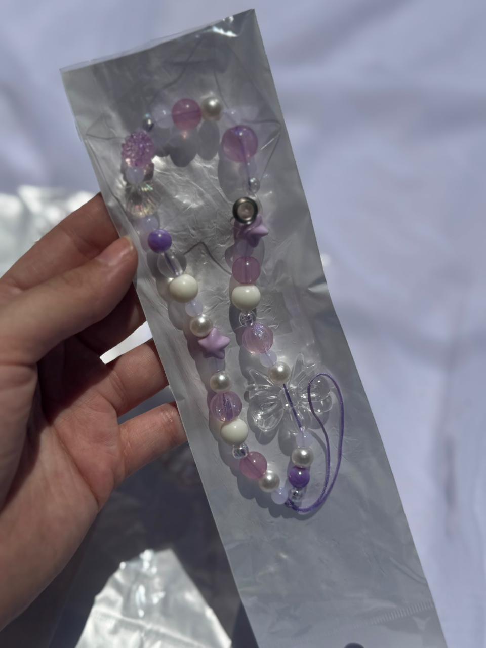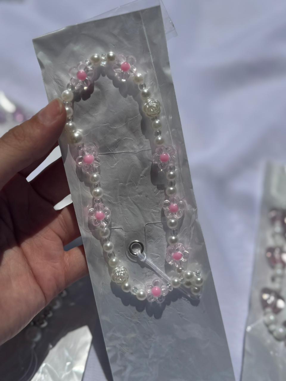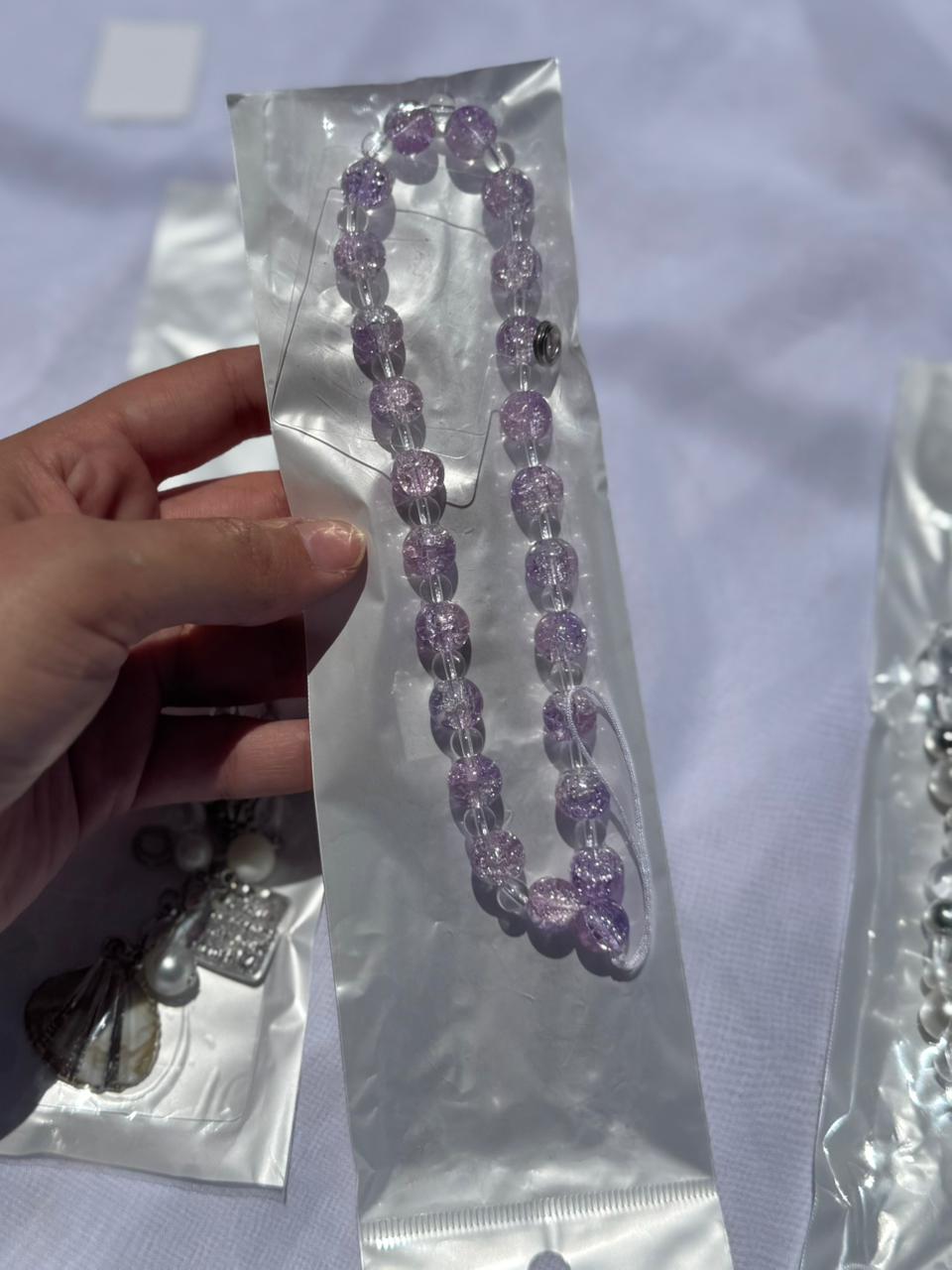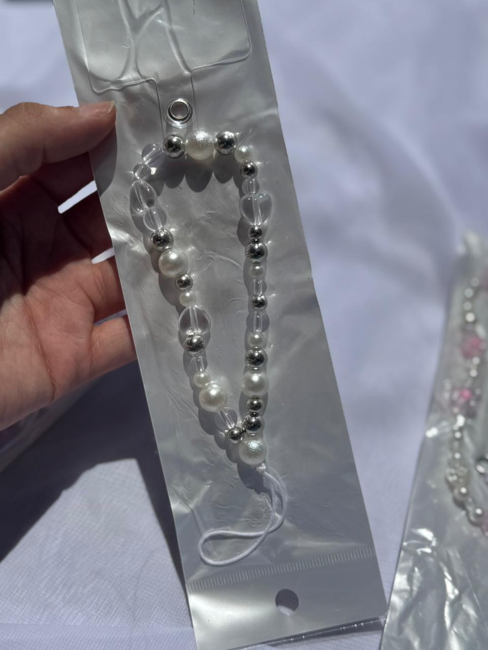 Correa de hilo con detalles de piedras decorativas, ideal para llevar el celular de forma cómoda y segura, sumando un toque canchero a tu look. Liviana y práctica para usar todos los días.